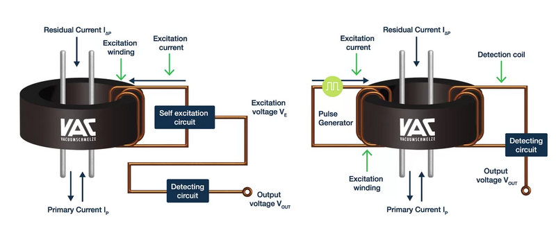 Un sensor Fluxgate opera llevando un núcleo magnético a saturación. Esto se hace en direcciones alternas. Cuando hay una corriente residual, se crea un desequilibrio. Este desequilibrio altera el comportamiento magnético del núcleo. Esta alteración se mide con gran exactitud. Permite determinar la presencia, dirección y nivel de la corriente de fallo. El rendimiento del sensor depende mucho del núcleo magnético. Los núcleos de VAC ofrecen un rendimiento superior. Son perfectos para aplicaciones exigentes y de larga duración. Por consiguiente, garantizan una fiabilidad excepcional.